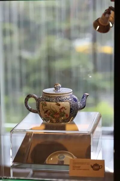 清乾隆时期的粉彩青花开光花鸟纹描金茶壶