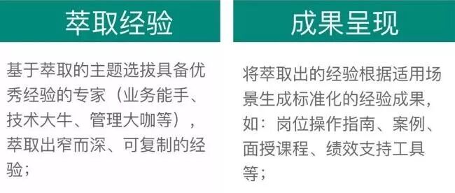 一方面,通过经验萃取,可以产出适用于各类场景的学习资源;另一方面,通过萃取的经验可以作为绩效提升的工具,现在已逐渐成为业务发展学习项目的关键元素。