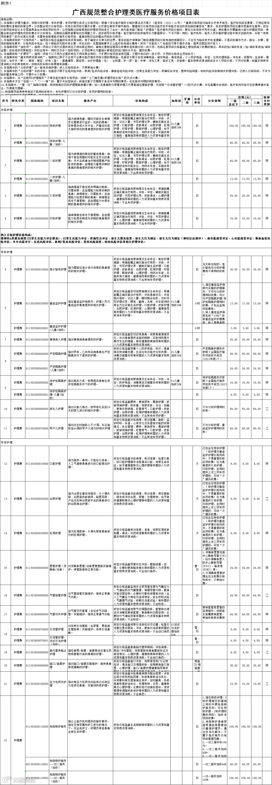 关于自治区医保局规范整合护理类医疗服务项目价格的通知