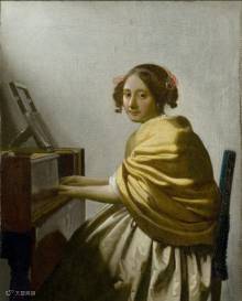 配图:约翰内斯·维米尔(1632-1675)《坐在维金纳琴旁的年轻女子》,1670-1672年,帆布油画,25.5 x 20.1厘米。