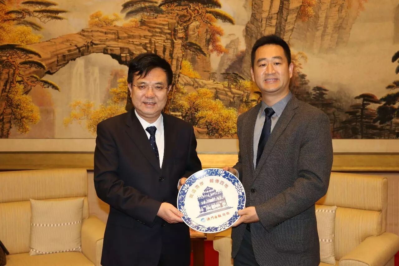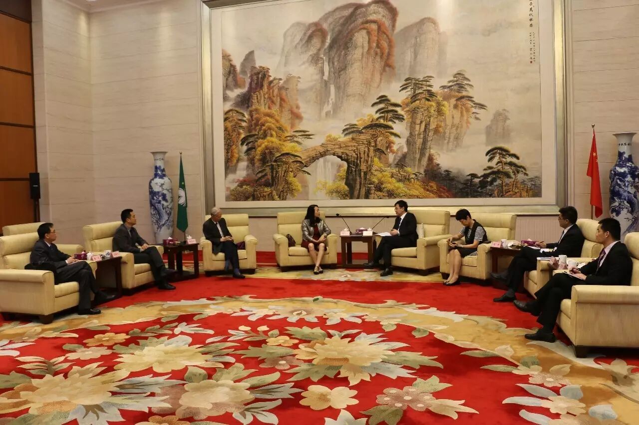 5月31日下午,澳門文化傳媒聯合會會長楊允中、澳門商報國際傳媒集團總裁鄧文玉、澳門商報社長朱海生、總編輯梅東一行,就澳門商報創刊11周年、澳門文化傳媒聯合會成立8周年系列活動事宜拜訪中央政府駐澳門聯絡辦公室,受到澳門中聯辦副主任薛曉峰等領導的熱情接待,並進行了座談交流。中聯辦文化教育部部長徐婷、副部長趙川東、處長傅漢榮、助理何金盞出席了會見。