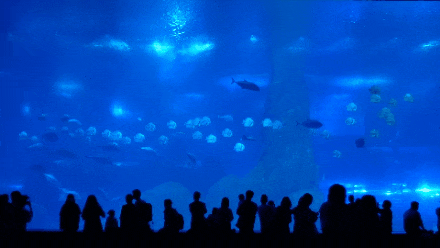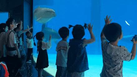海底巨幕前打卡拍照