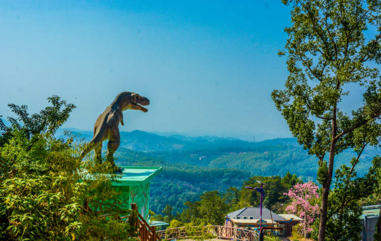 绿树环绕的恐龙谷就在摩天轮下