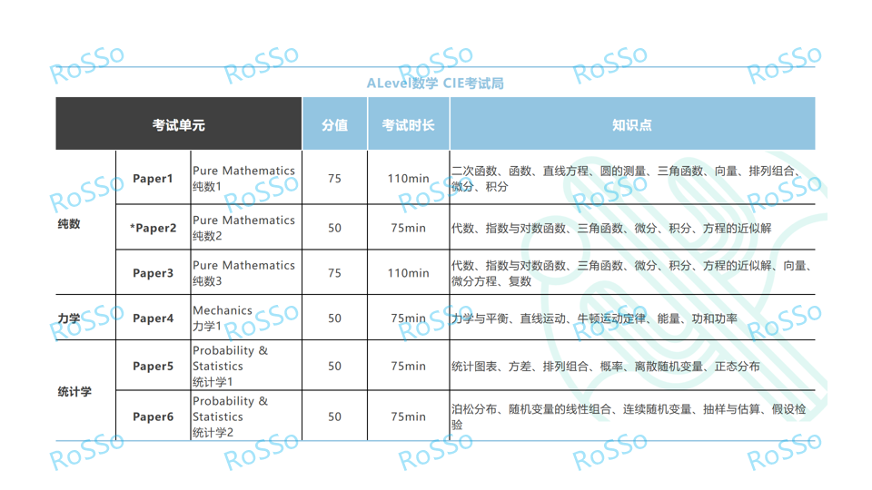 A Level数学难度高,考试人数也多,其考试难度体现在广泛的知识覆盖面上,从基础的代数、几何、微积分到更高级的统计、概率论和向量学等。