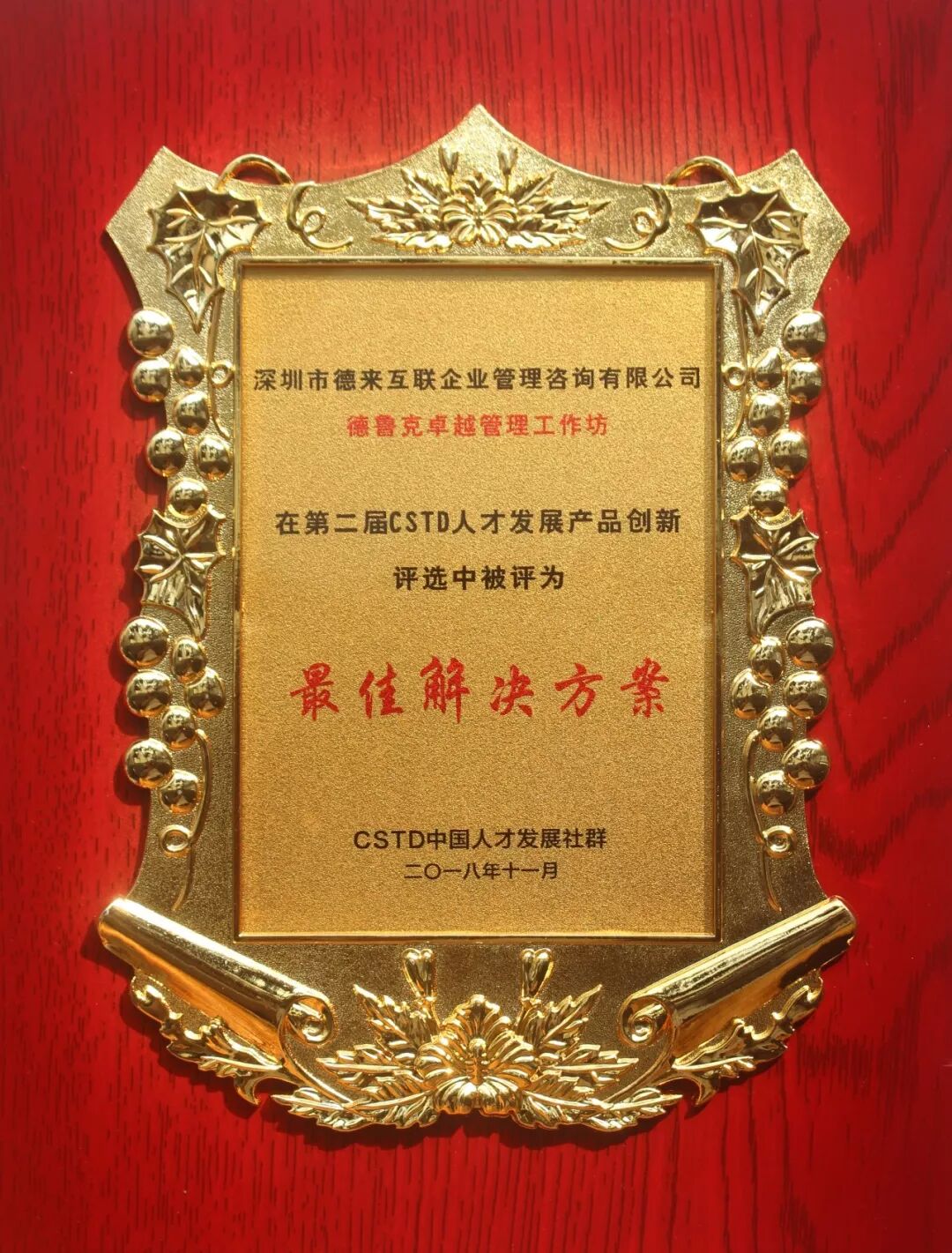 2018年11月8日,历时3个月的2018(第二届)CSTD中国人才发展产品创新评选结果在上海正式揭晓。德来企管自主版权产品“德鲁克卓越管理工作坊”荣获“最佳解决方案”奖项。