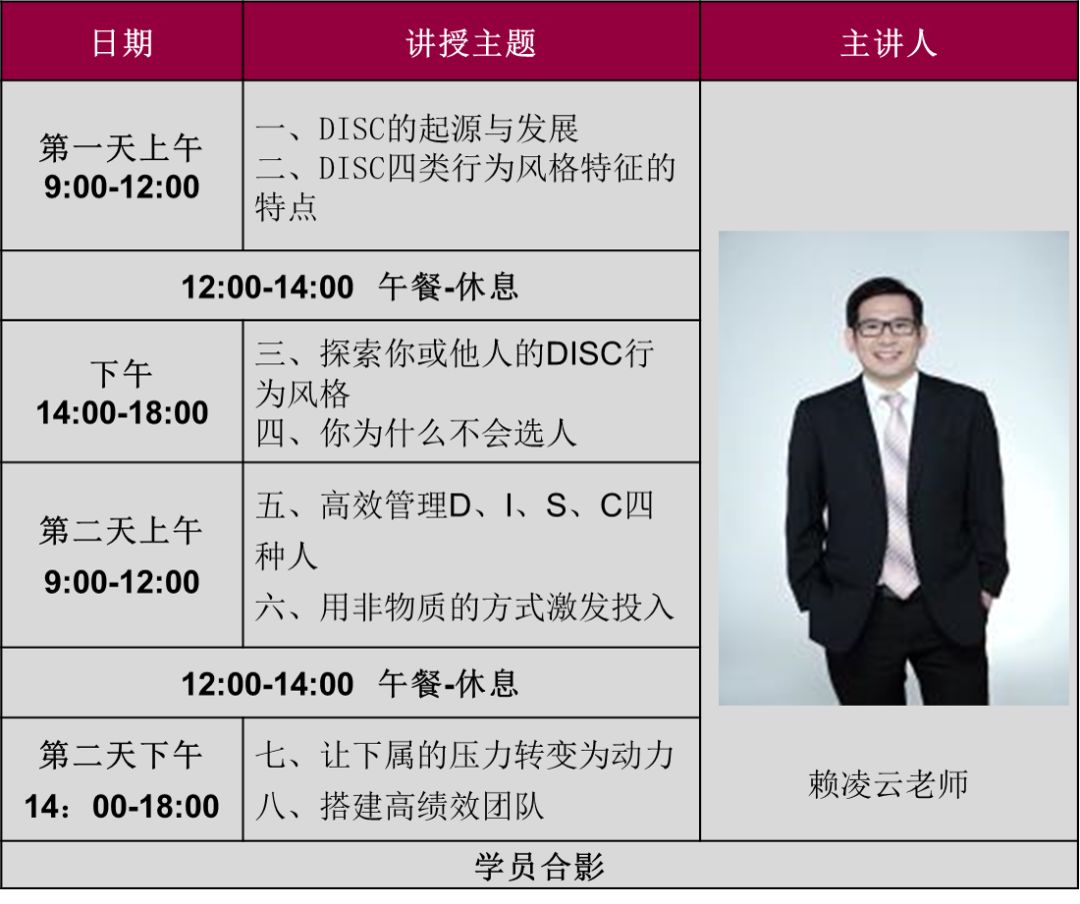 非常感谢阁下报名参加德鲁克卓越管理工作坊之《知人、用人、留人—DISC在团队管理中的应用》课程。请届时到培训现场报到处登记报到并领取培训相关物品和资料。您参加这次课程后一定会学有所获,现将课程报到事项通知如下: