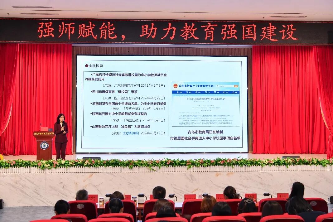 山东省教育科学研究院副院长薄存旭教授进行了学术点评,他强调减负是手段,赋能是目标,并呼吁构建系统性的支持体系,推动教师专业发展从“个体突围”转向“生态共建”。教育的高质量发展需要以教师为核心,通过减负释放潜力,通过赋能激活质量。