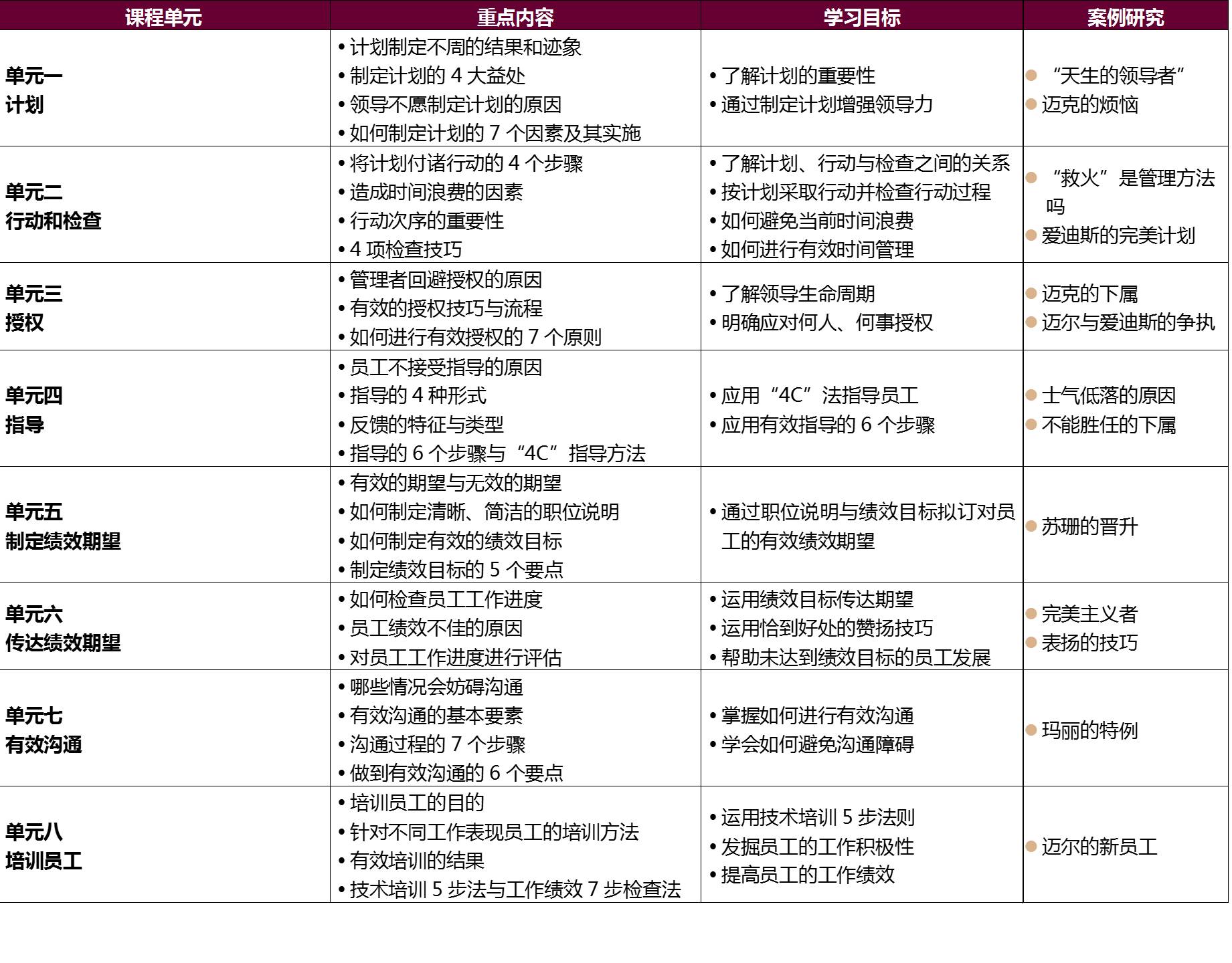 主讲课程:《卓有成效的管理者》、《八项基本管理技能》。