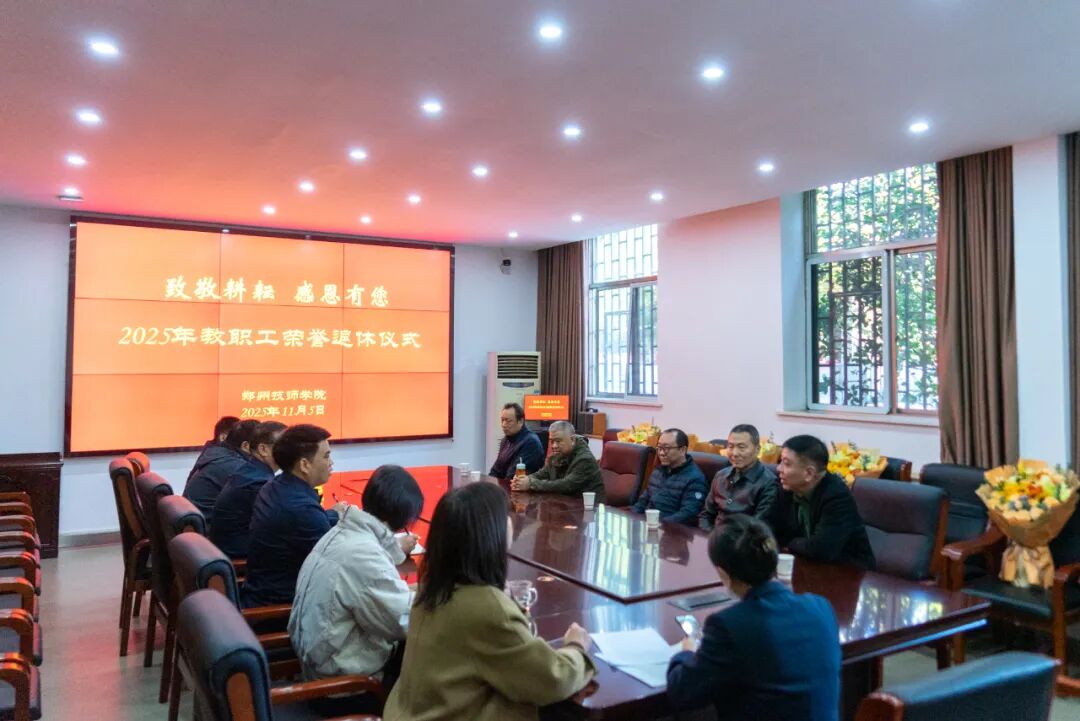 弦歌不辍数十载,桃李芬芳满庭芳。11月5日,学院1号楼1楼会议室暖意融融,2025年教职工荣誉退休仪式在此温情启幕。院长徐锡志、副院长罗荣与今年退休的教职工代表及所在部门负责人、相关处室工作人员齐聚一堂,以最诚挚的敬意,向为学院发展倾注心血的退休老师们告别、致敬。仪式由副院长罗荣主持。