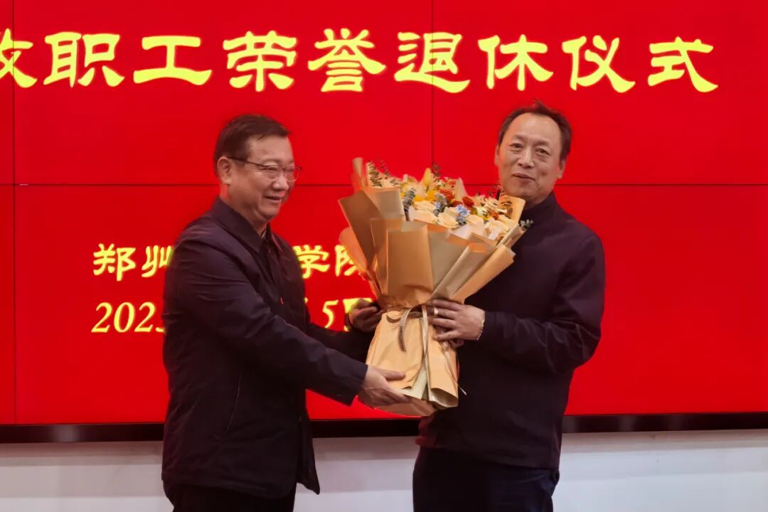“你们是学院发展的‘奠基人’,更是我们心中的‘引路人’!”院长徐锡志在讲话中动情回应。他高度肯定退休教职工的贡献:从教学改革的深入推进、专业设置的优化升级,到学生管理的细致落实、基础建设的稳步推进,学院每一次进步都离不开大家的默默付出;大家以严谨治学的态度、爱岗敬业的精神、无私奉献的品格,不仅培育了大批服务社会的优秀学子,更为年轻教师树立了标杆。 徐院长同时为退休教职工送上美好祝愿:“希望大家好好享受退休生活,去看看祖国的大好河山,培养新的兴趣爱好,让日子过得充实又精彩。但请记住,郑州技师学院永远是你们的‘家’,欢迎常回来看看,和我们一起见证学院的新发展、新辉煌!”