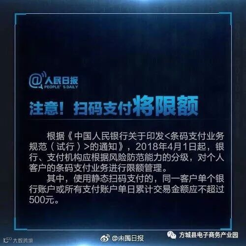 @ 所有人!4月起扫码支付将限额,这些你必须知道】付款扫码、收款扫码…如今扫码支付已成为生活常态。根据央行通知,4月1日起,微信、支付宝等应用扫码付款将限额,静态扫码每天最高500元。你知道什么是静态扫码吗?消费超过500元怎么办?动态扫码为何更加安全?9图带你读懂↓↓转存!