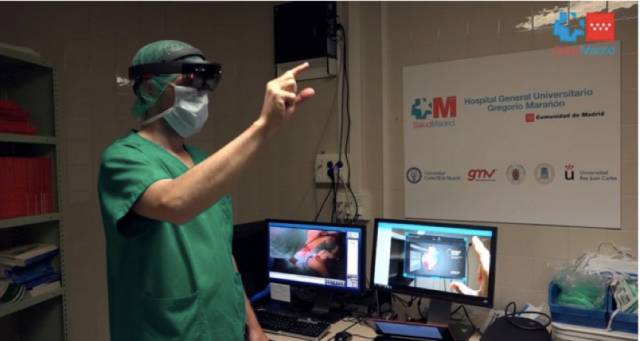 西班牙外科医生佩戴定制版的HoloLens,能够查看CT扫描数据,超声波数据和其他手术过程中所需要的核心数据。将手术时间缩短一半。
