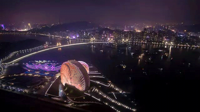 燈光秀如果錯過了,你一定不能錯過日月貝的首秀。2016年12月31日,浮在珠海海面上的大貝殼終於要開幕了。