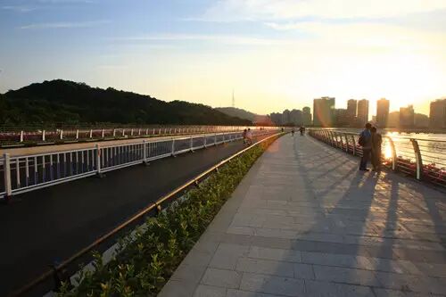 該橋設置了“潮汐車道”。平常時間只對機動車實行“一進一出”兩車道,留一條車道給自行車道。