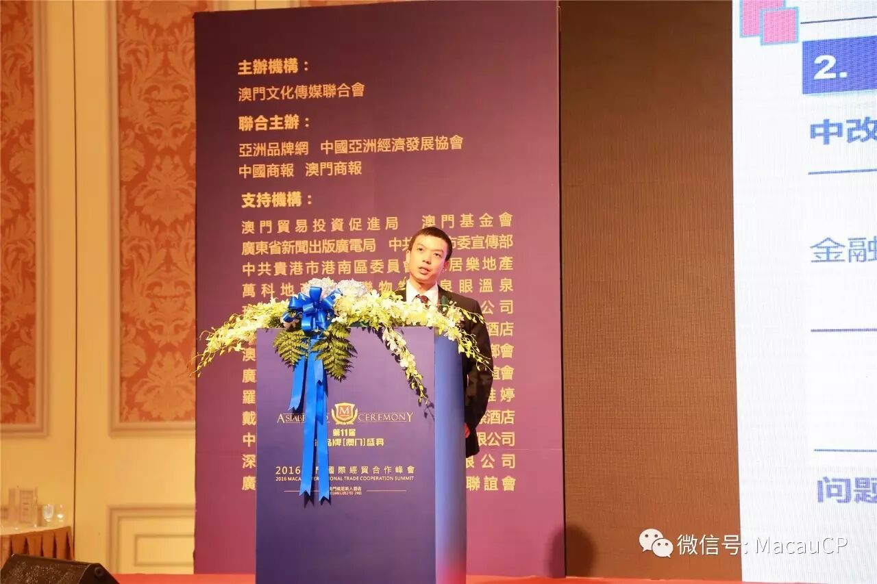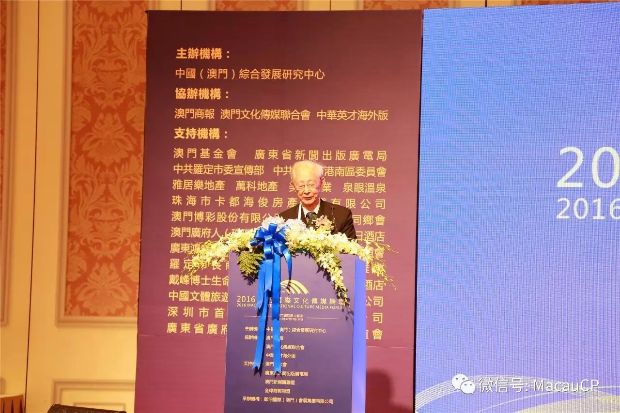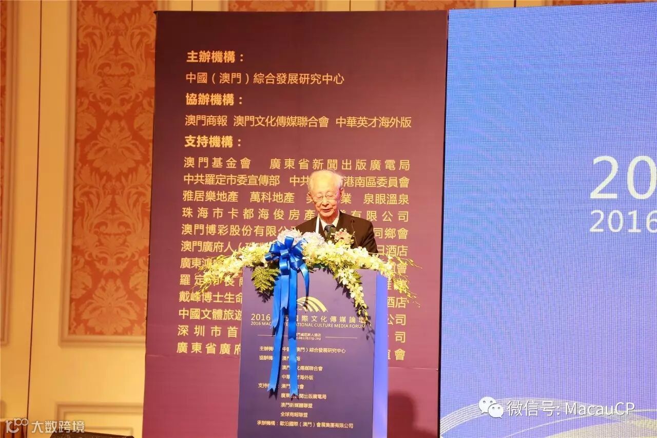 澳門文化傳媒聯合會會長、中國(澳門)綜合發展研究中心會長楊允中致辭