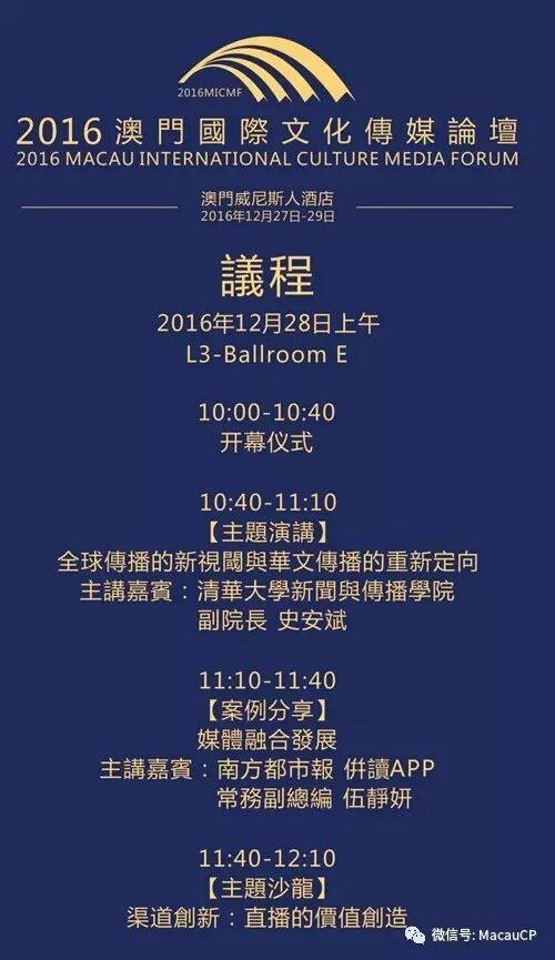 【傳媒大事】2016澳門國際文化傳媒論壇及澳門國際經貿合作峰會議程