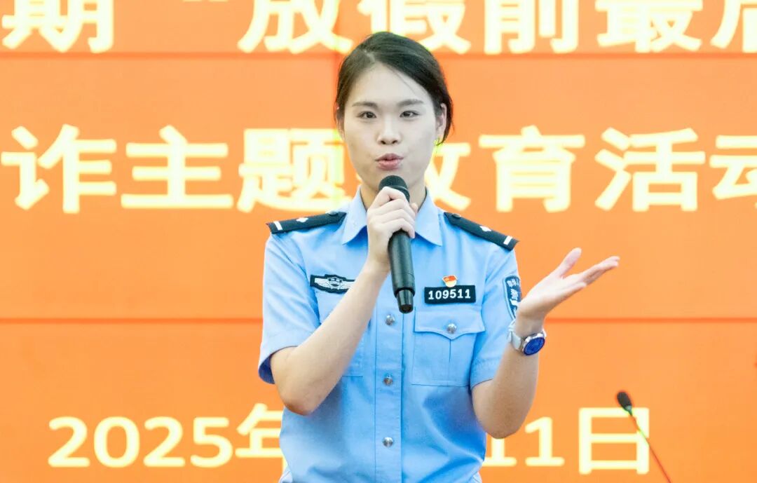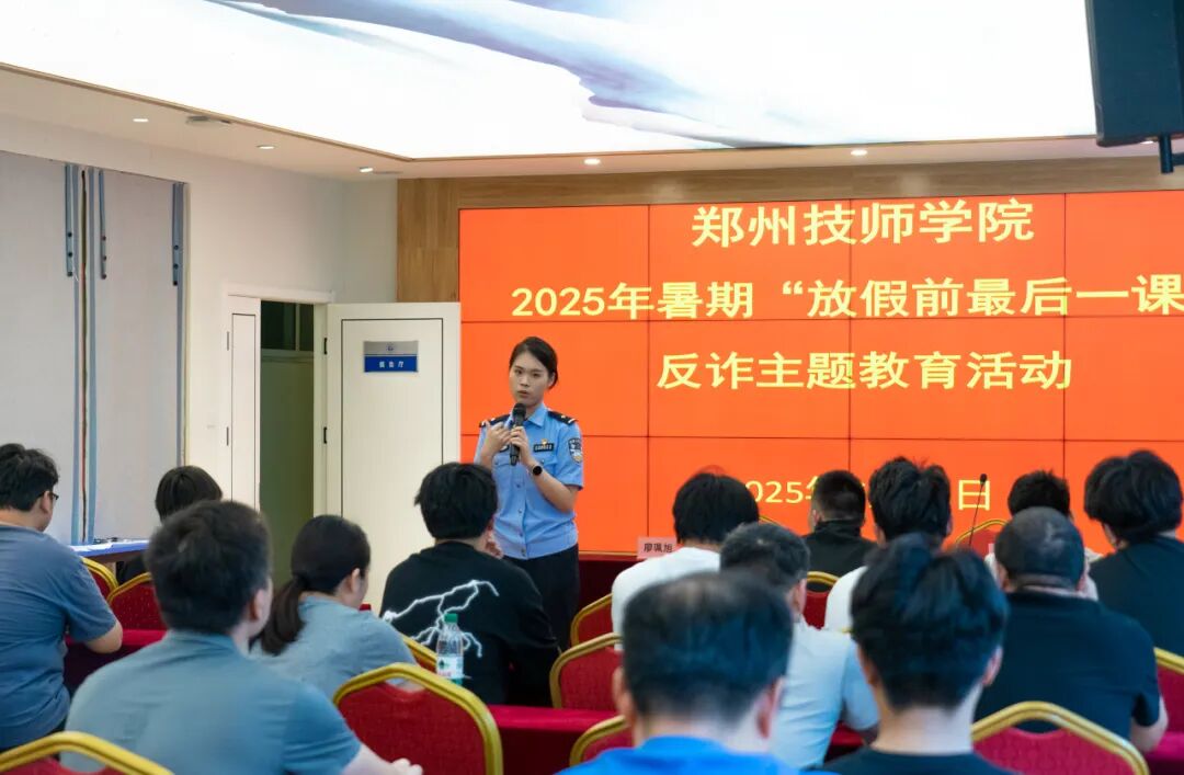 为提高学生防范电信网络诈骗的意识与能力,6月11日,学院特别邀请中原区反诈大队廖珮旭警官开展放假前“最后一课”反诈宣传活动,并组织各系班主任、部门安全员一同参加学习。
