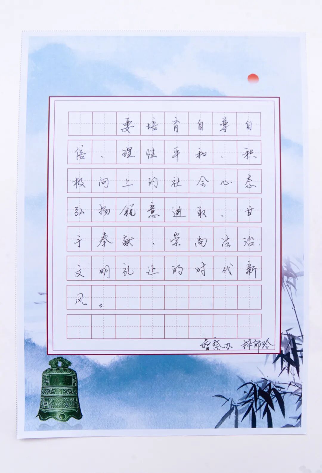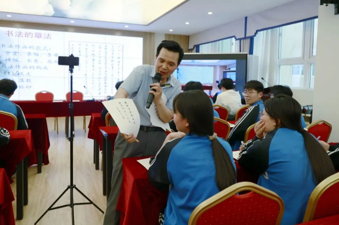 基础教育部教师充分发挥文化育人功能,以书法为载体创新课堂教学模式,从笔墨纸砚的使用技巧,到汉字笔法结构的深度解析,老师们以生动形象的讲解,带领学生领略书法艺术之美,感受中华文化的深厚底蕴。更巧妙地将思政元素融入教学,让学生在横竖撇捺的书写过程中,潜移默化接受思想熏陶,实现文化传承与价值引领的有机统一。