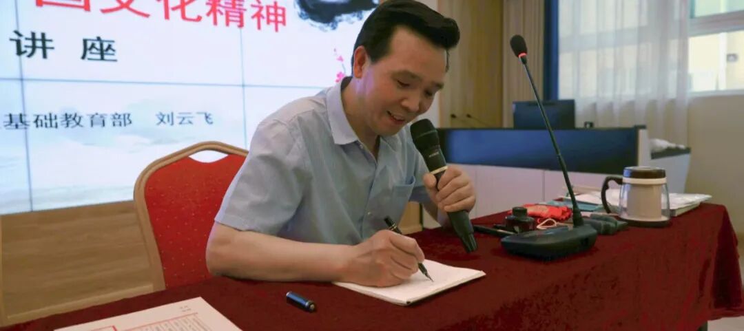 基础教育部刘云飞老师以 “书法艺术与中国文化精神” 为题,为同学们带来一场精彩的文化盛宴。刘老师从殷商甲骨文讲起,系统梳理秦汉简帛、魏晋风骨、唐宋神韵等书法发展脉络,深入阐释书法艺术承载的文化精神内核。