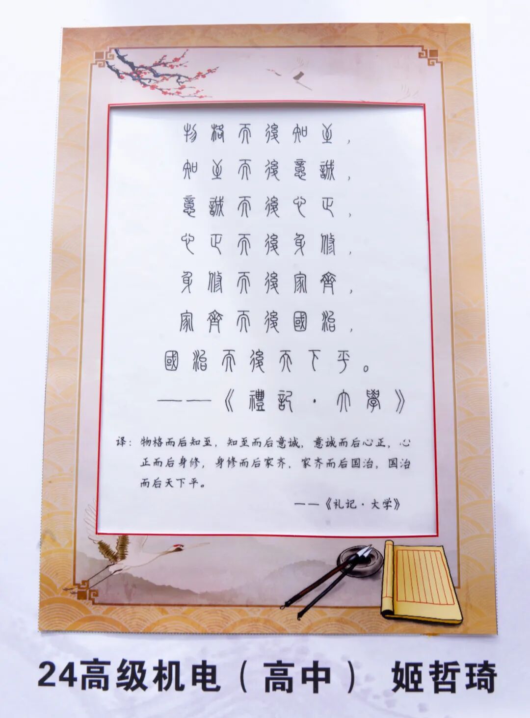 此次 “思政书韵新课堂” 活动,通过将书法这一传统文化载体与思政教育深度融合,让思政教育更具感染力和亲和力,既提升了学生的艺术素养,又增强了文化自信,引导青年学子在翰墨书香中坚定理想信念,书写精彩人生。未来,基础教育部将持续探索传统文化与思政教育的融合创新路径,为培养德技并修的高素质技能人才不懈努力。