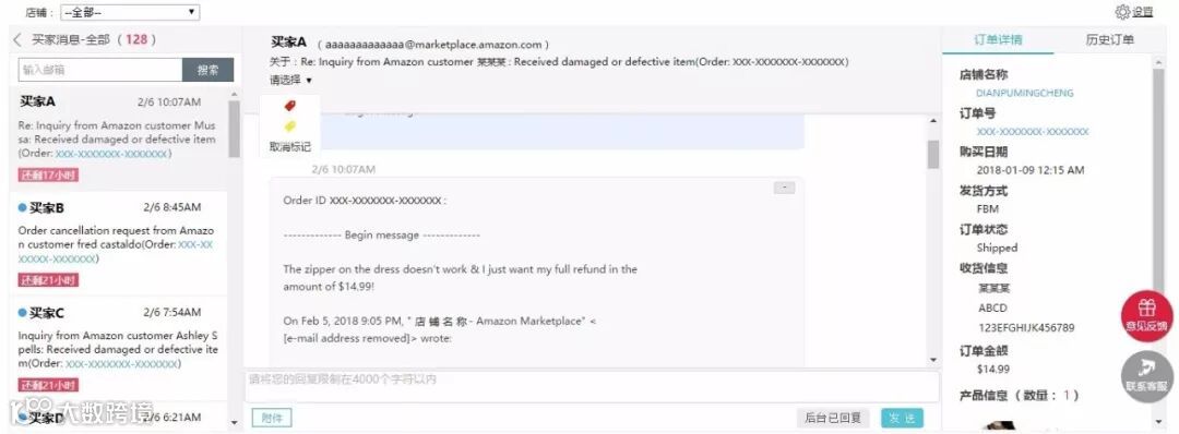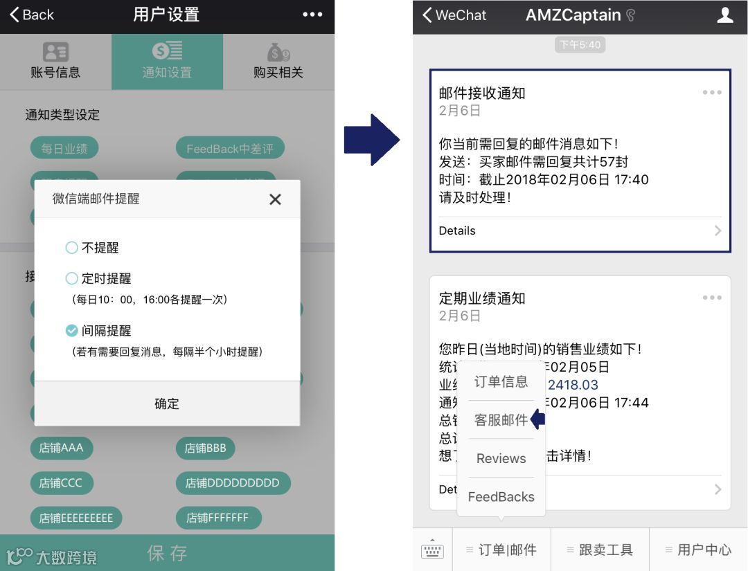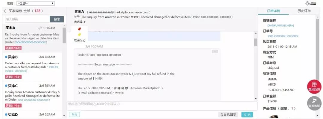 2018年2月6日,亚马逊船长最新上线“客服邮件”系统,支持多店铺统一邮件管理,PC端与微信端均可操作。