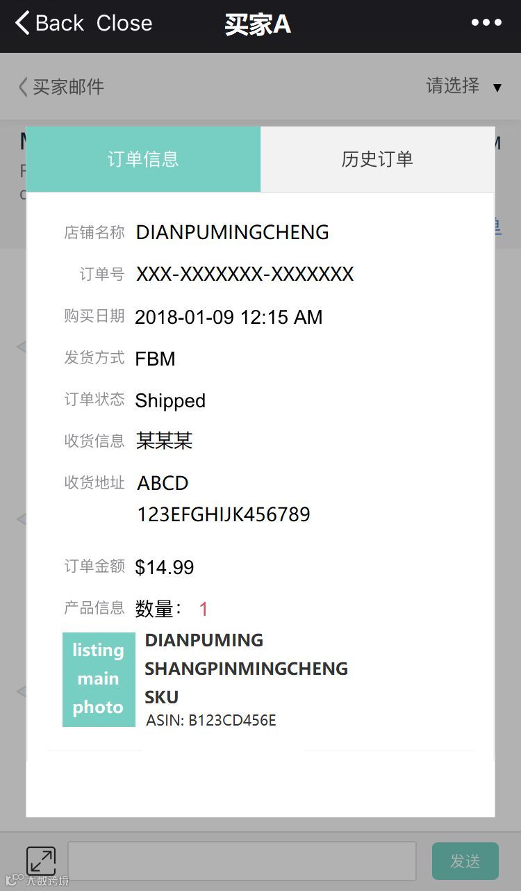 ③订单(及历史订单)信息可以查看邮件对应订单详情与该买家的历史订单信息,如果买家发送的邮件主题不含订单号,则无法读取订单详情。
