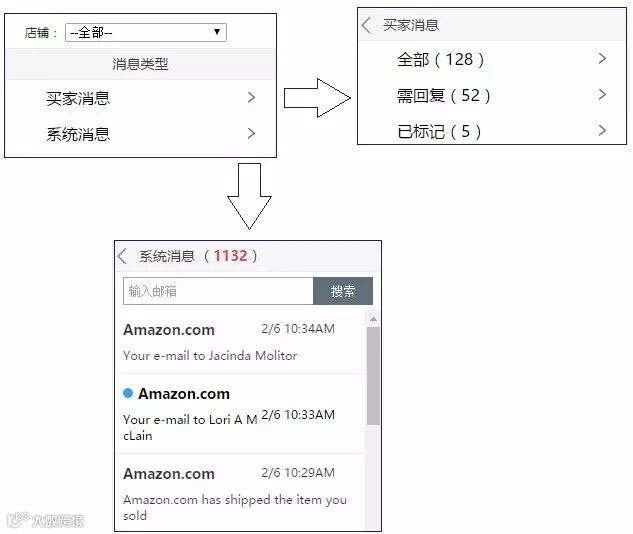 1、“客服邮件”系统分为“买家邮件”和“系统邮件”两个模块。