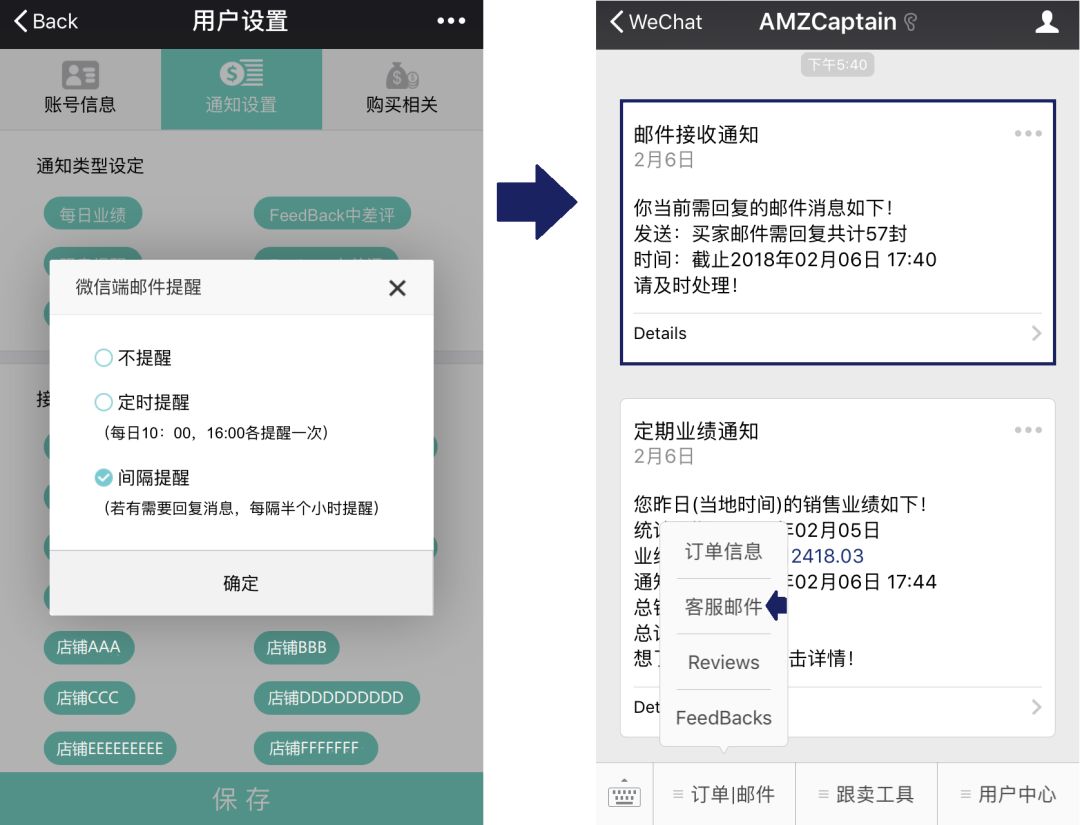 1、绑定亚马逊船长公众号(AMZCaptain)后可以通过微信端管理邮件并接收邮件提醒 。
