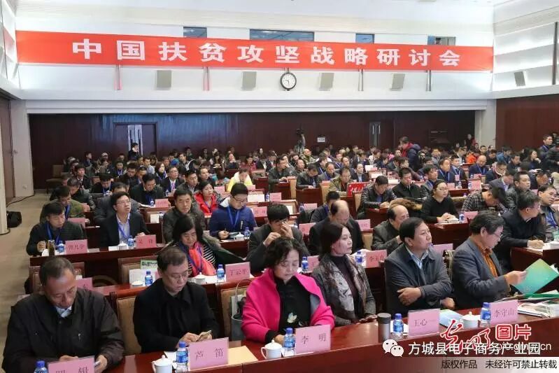 2016年11月26日,由中国小康建设研究会主办的"中国扶贫攻坚战略研讨会"在北京西直门宾馆召开,全国政协原副主席白立忱、中国小康建设研究会会长王巨禄、国务院扶贫开发领导小组原副组长胡富国、财政部副部长朱光耀、农业部原常务副部长尹成杰、中国扶贫基金会会长段应碧等国家和地方有关领导、各省市驻京办、扶贫办等上千人出席。