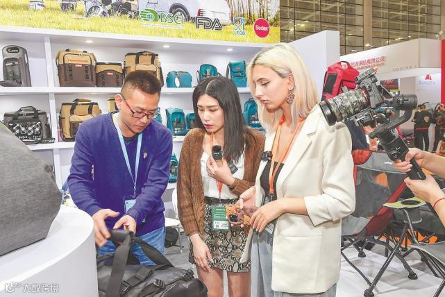 递名片、加微信、发照片、说产品……整个上午,山东省临沭县金柳工艺品有限公司运营主管卢贝贝忙个不停。据悉,报名参加此次展会的采购商超过5万名,所以卢贝贝的展位前,来访者络绎不绝。“我们利用本地盛产柳条的优势,生产藤编家居收纳盒,年出口额超过1亿元人民币,其中20%是通过跨境电商销售的。”卢贝贝说,跨境电商肯定是未来出口的新趋势,所以希望通过展会,招募更多分销商,把产品卖给更多海外客户。