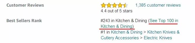 怎么查看BSR应该都知道吧,在listing页面的【Product Information】Best Seller Rank处,我们查看这个listing排名的地方后有个“See Top 100 in ××”,点击就能看到这个品类畅销榜前100个listing。