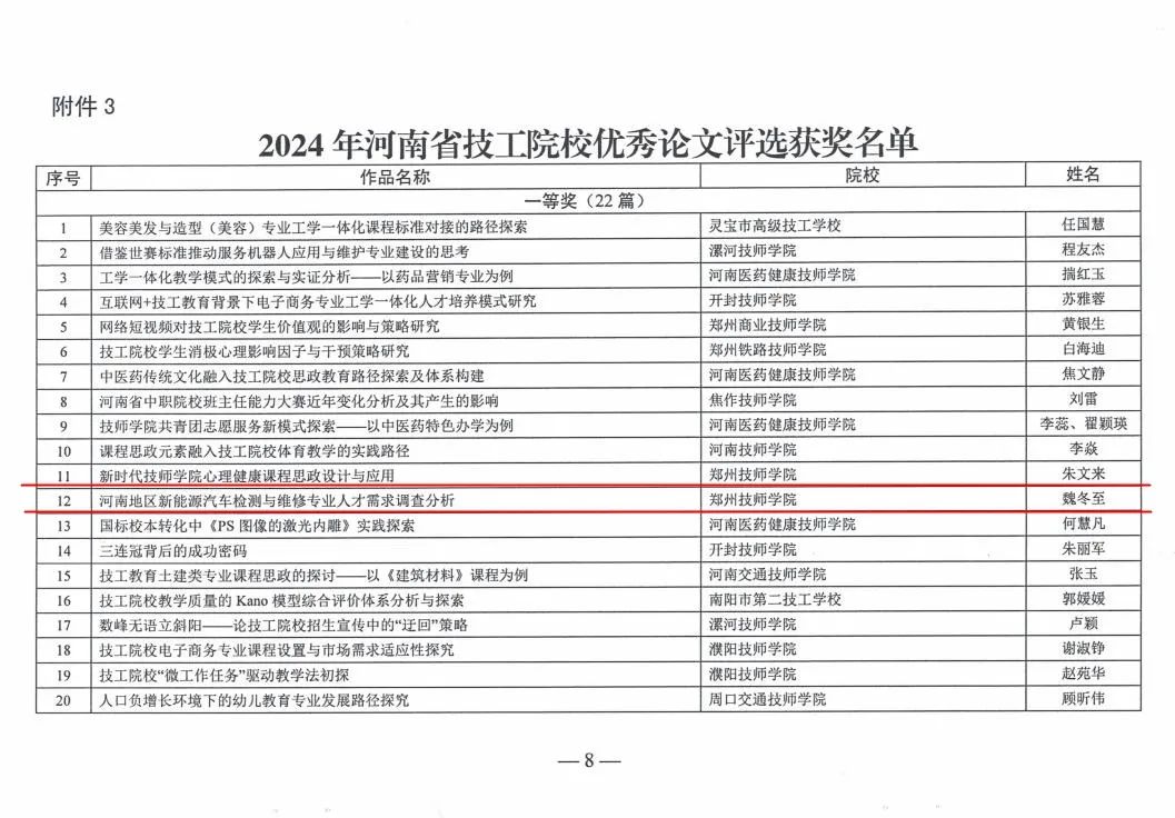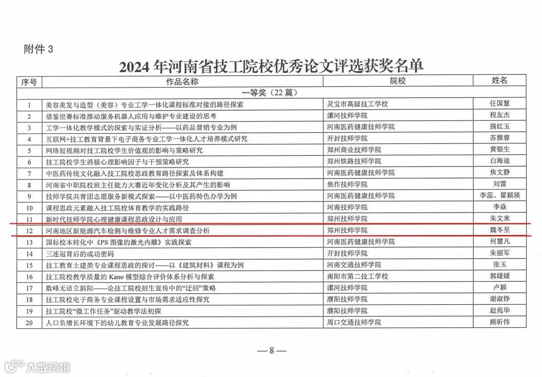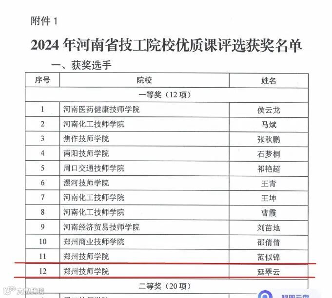 近日,河南省人力资源和社会保障厅“2024年河南省技工院校优质课微课及优秀论文评选”结果揭晓,我院教师共斩获15项大奖,学院获优秀组织奖,充分展现了学院教师队伍先进的教学理念和卓越的教学能力。