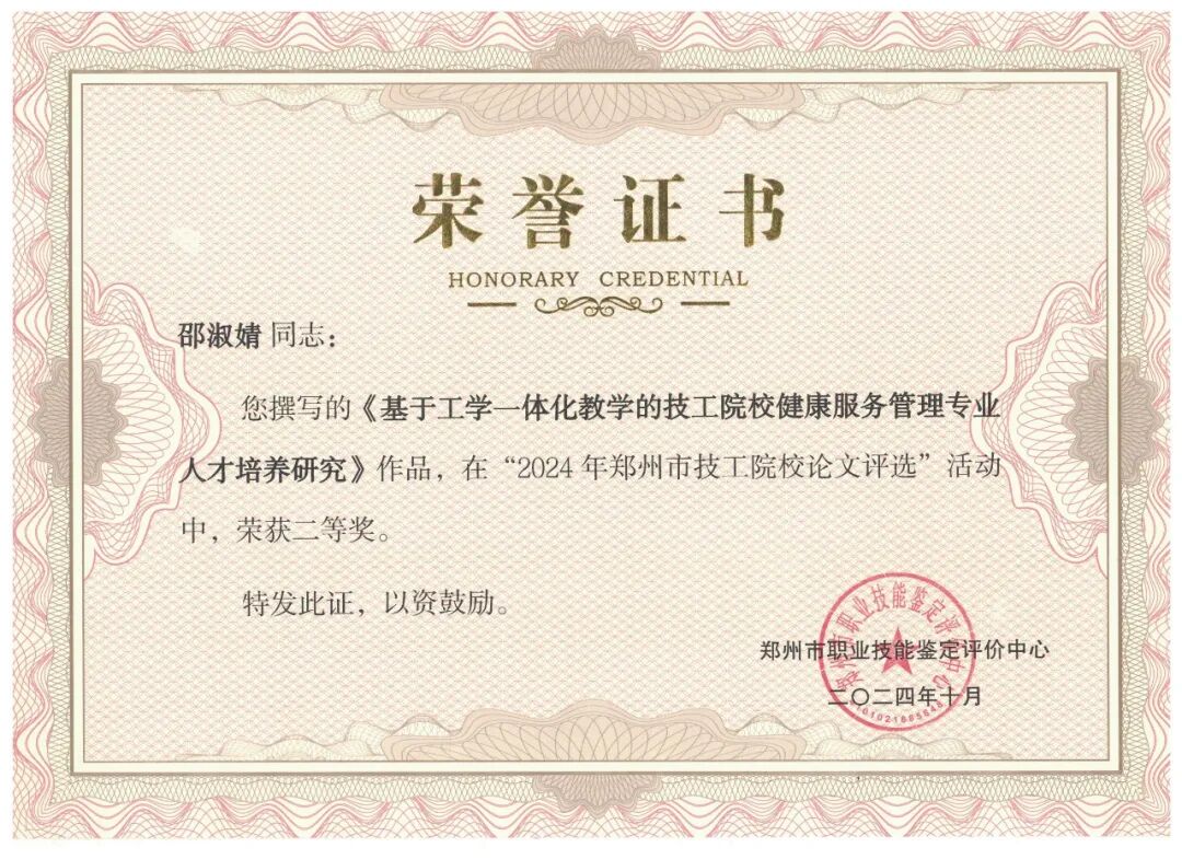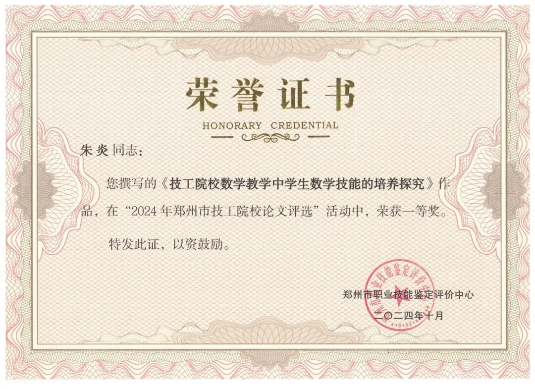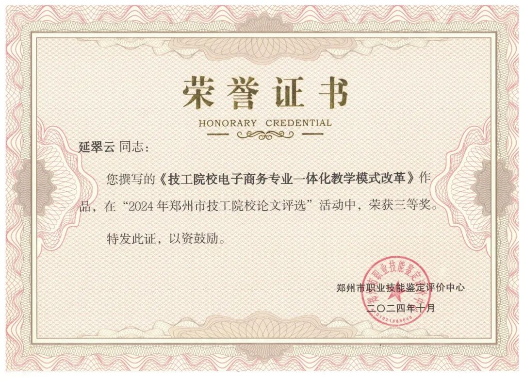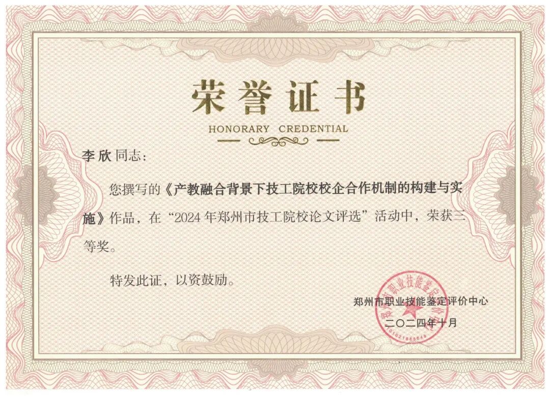 近日,郑州市职业技能鉴定评价中心公布了郑州市技工院校优秀论文评选和郑州市技工院校微课评选获奖名单,学院8名参赛教师获奖,其中优秀论文评选中,朱炎、侯林峰两位老师荣获一等奖;朱文来、邵淑婧两位老师荣获二等奖;李欣、延翠云、祁静三位老师荣获三等奖。微课评选中,明月老师荣获三等奖。优异的成绩充分展示了我院教师过硬的教学能力、较强的专业水平和良好的综合素质。也是学院深入推进职教改革,重视教学教研,努力提升教师素质的结果。