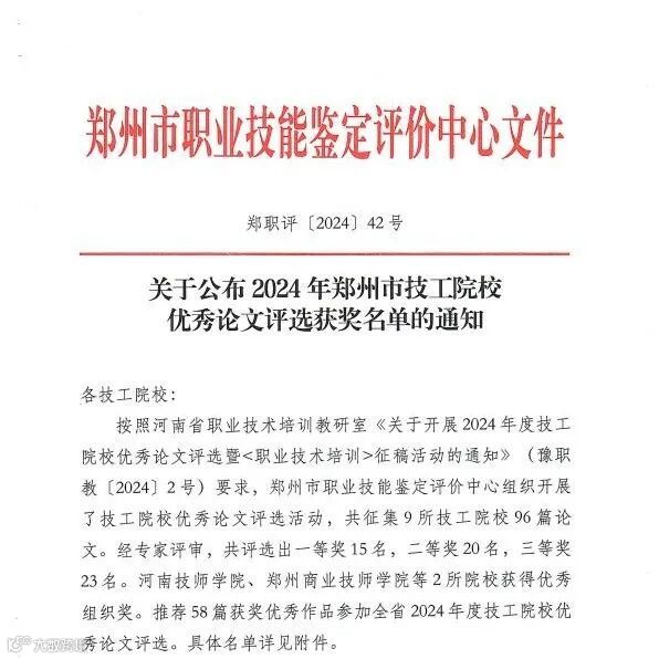 2024年郑州市技工院校优秀论文、微课评选