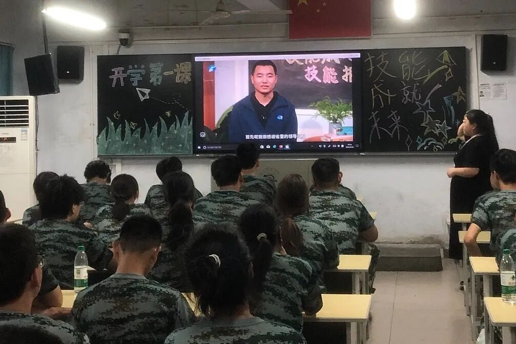 同学们在班主任老师的组织下,通过观看学院宣传片,了解学校的悠久历史、办学特色、师资力量、实训设施以及优秀学生的风采,激发起大家对未来校园生活的向往和对职教发展的信心,注入了奋发向上的动力。通过观看学院技能竞赛获奖选手采访视频,同学们感受到了技能的魅力与挑战,进一步坚定了“技能成才、技能报国”的信心决心。