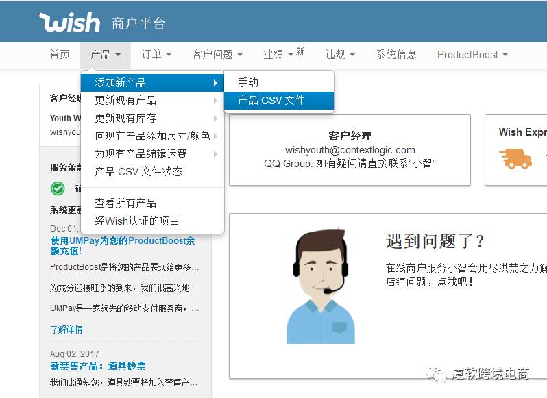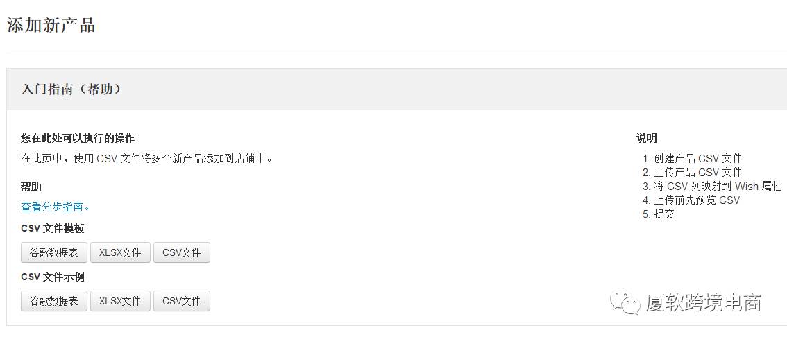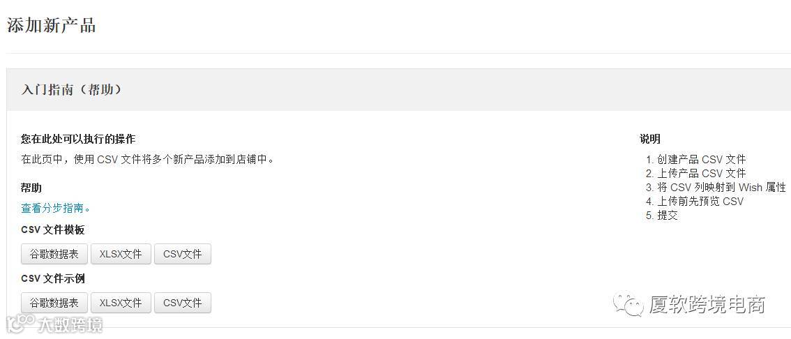 ②CSV上传:同样登陆商户平台,点击产品→添加新产品→产品CSV文件,进入添加页面