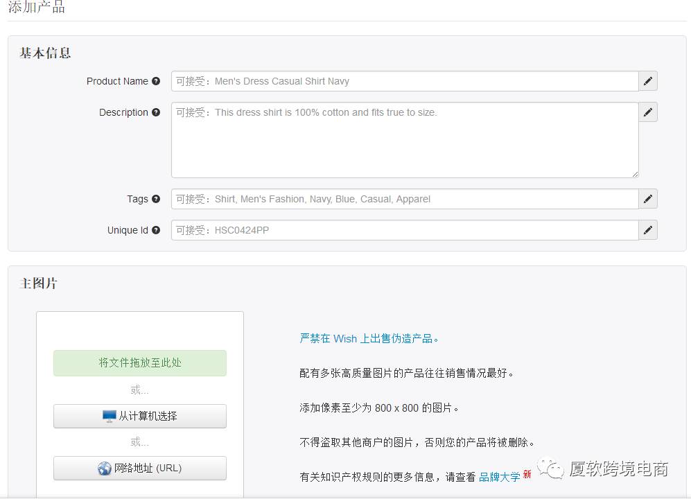 Unique Id(唯一的SKU号码):Wish.com 的系统用来识别、更新、追踪、更新和报道此商品。