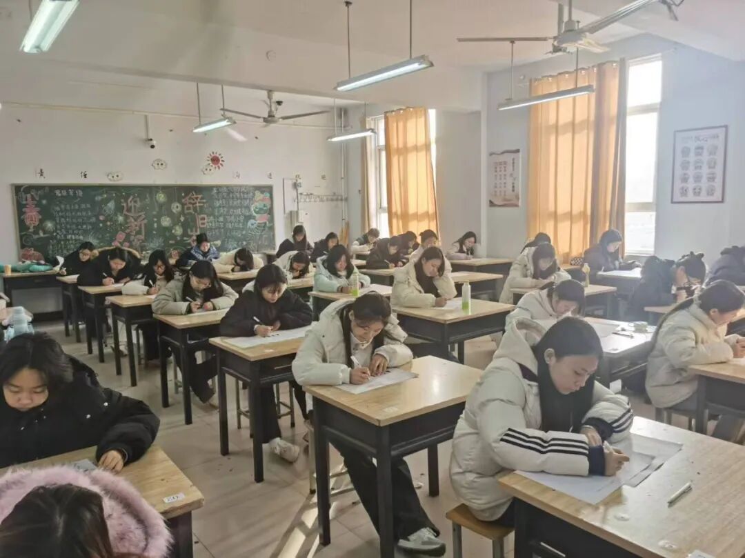 在各专业实操考试结束后,2025 年 1 月 4 日上午,在监考老师宣读考场纪律后,三个校区理论考试同时开考。考场内,学生提前上交手机、单人单桌,认真答题,展现良好风貌。监考教师严格执行流程,认真履行职责,维护考场秩序。