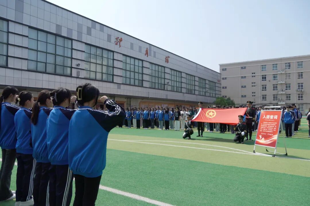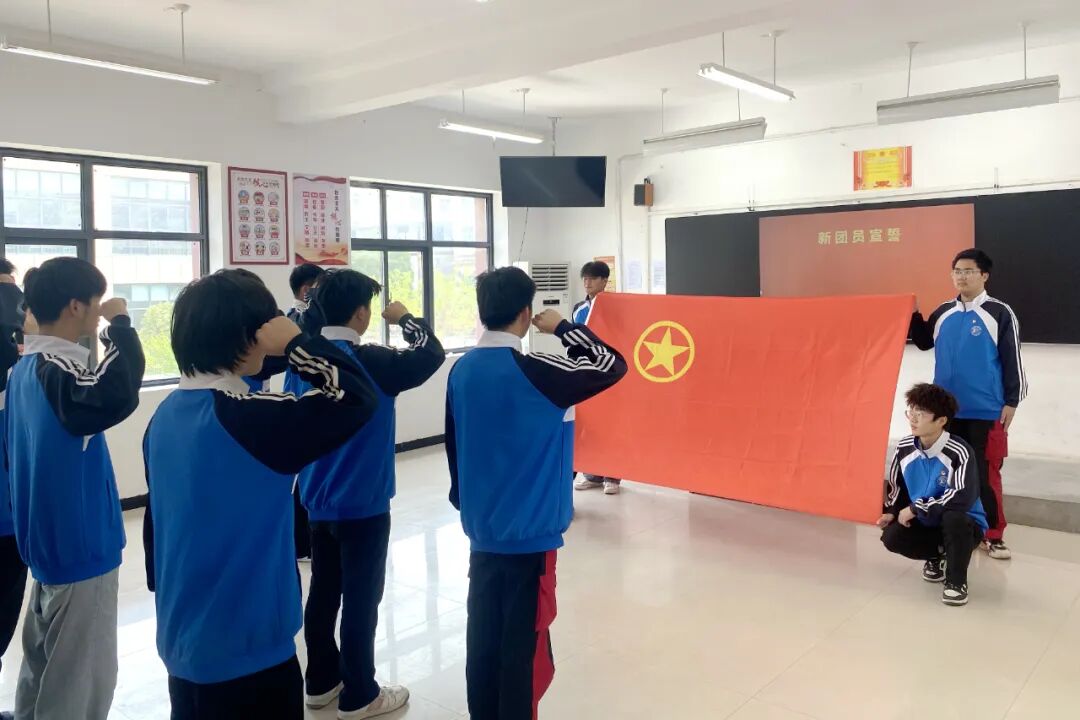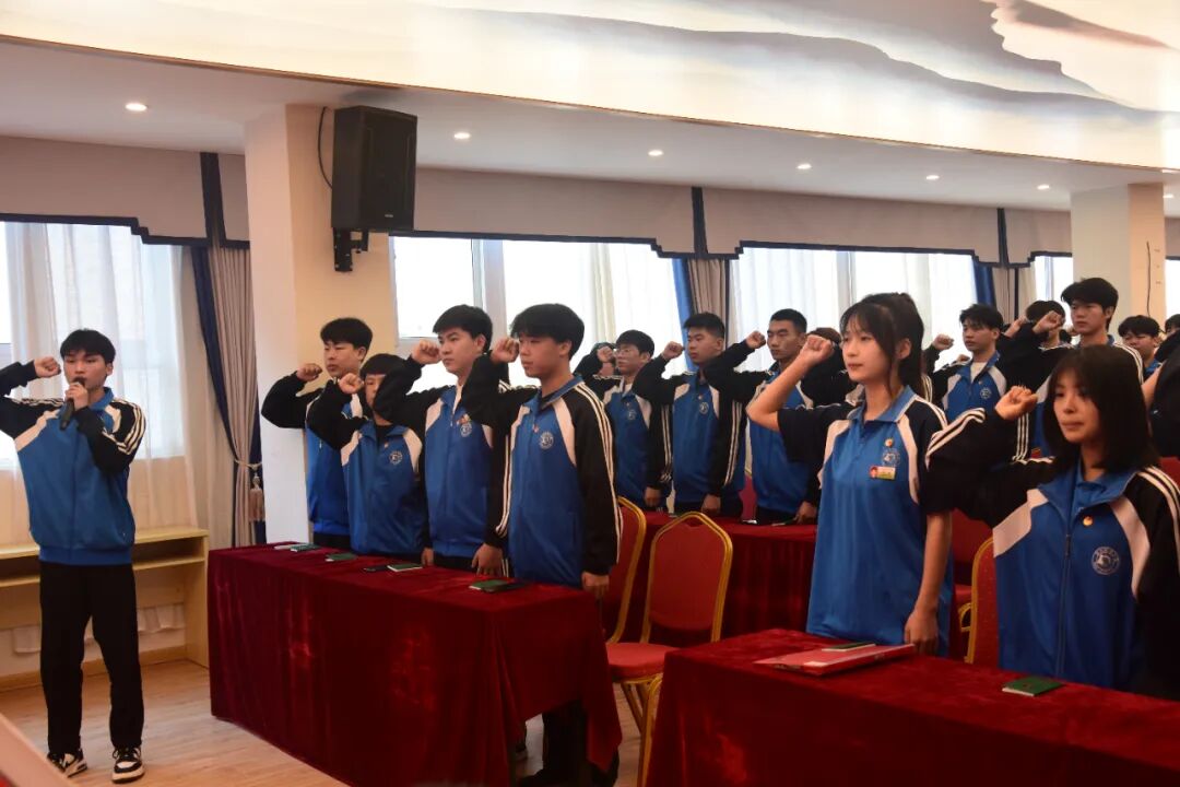 “我志愿加入中国共产主义青年团,坚决拥护中国共产党的领导......”面对团旗,新团员们举起右手,庄严宣誓,表达着自己对团队的忠诚和承诺。