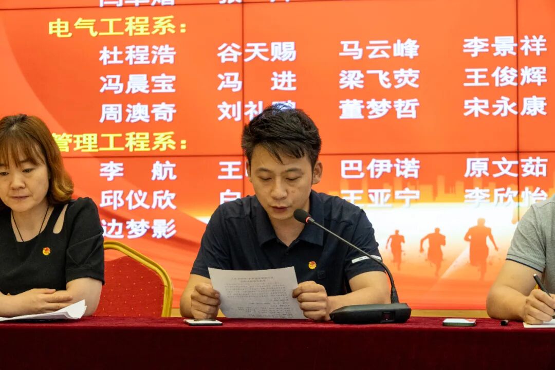 团委书记宋高博总结发言,要求新团员们发挥共青团员的先进性,勇担时代重任,不断学习、努力奋进、锤炼品格、提升自我,成为学院广大青年学生学习和进步的榜样。要坚定理想信念,做“有理想、敢担当、能吃苦、肯奋斗”的新时代青年,努力成为可堪大用,能担重任的新时代技能人才,共同书写中国式现代化挺膺担当的青春篇章!