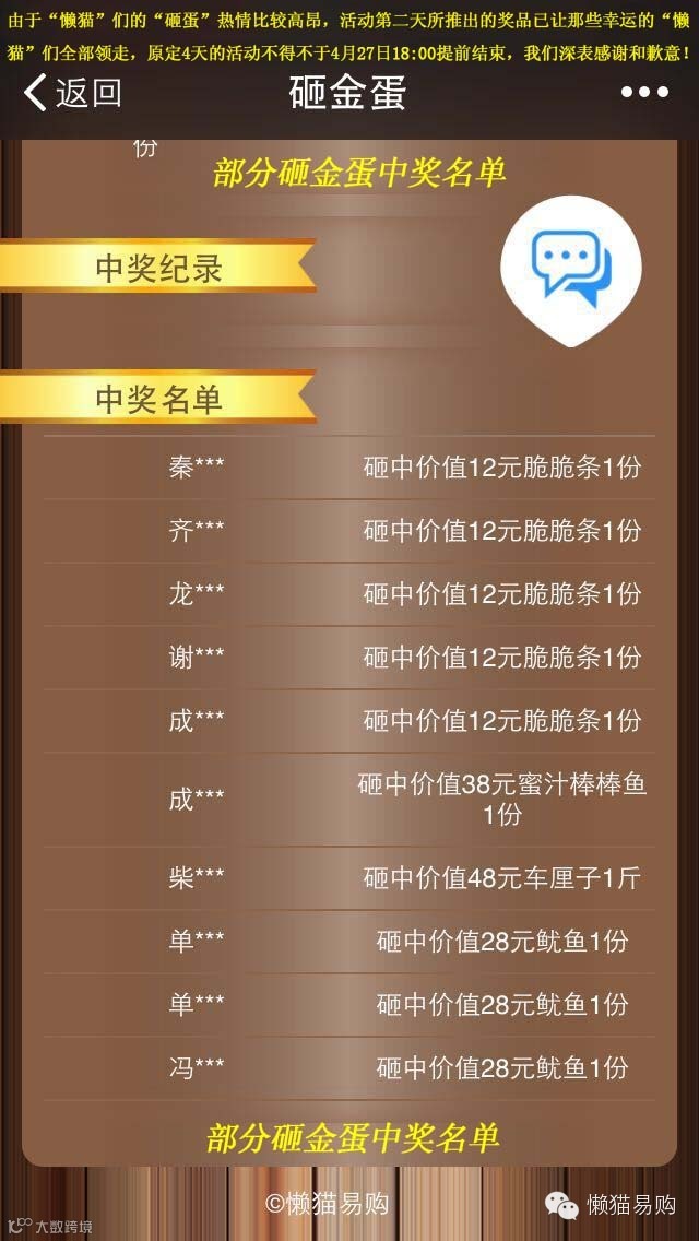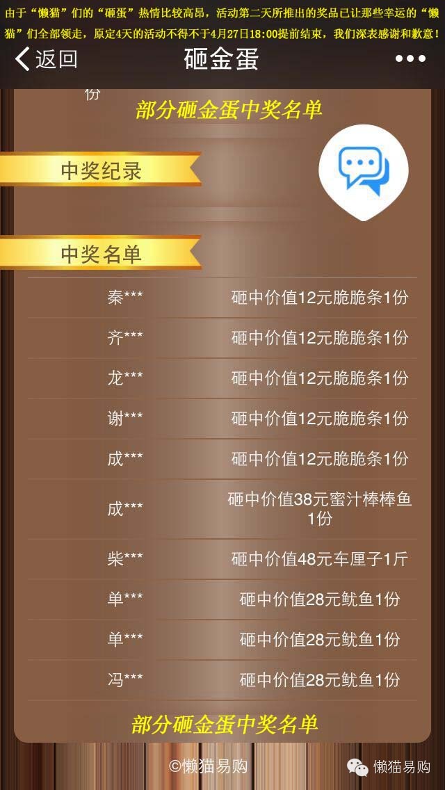 请中奖的“懒猫”们注意查收自己的中奖奖品。