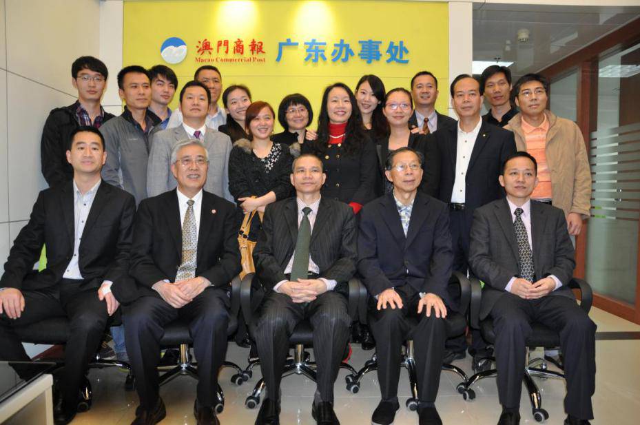 澳門商報駐廣東辦事處喬遷新址暨成立一周年慶典,來賓與澳門商報管理層合照。