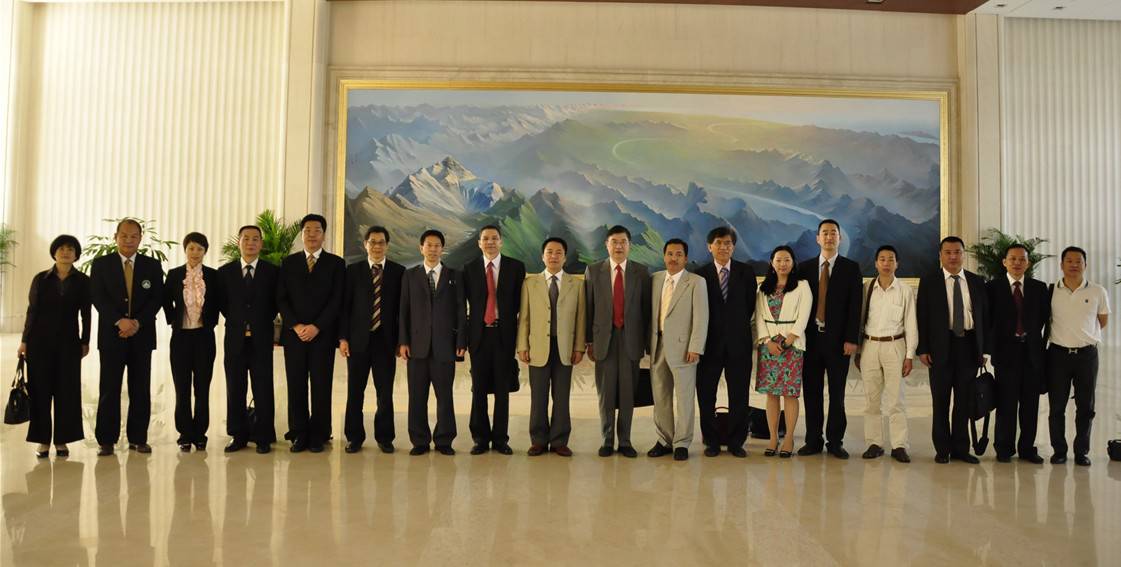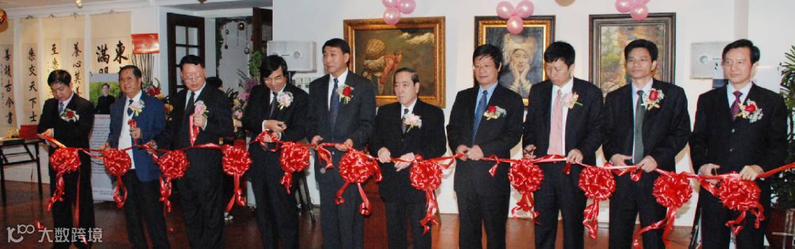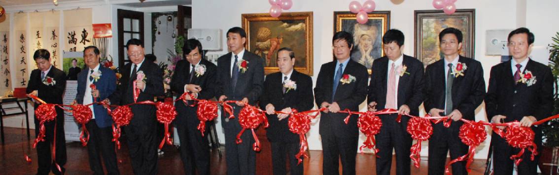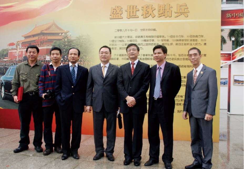 “新中國60年首都大閱兵圖片展”剪彩儀式,新聞局長陳致平、中新社社長刘北宪、澳門商報社長田亮等合照。
