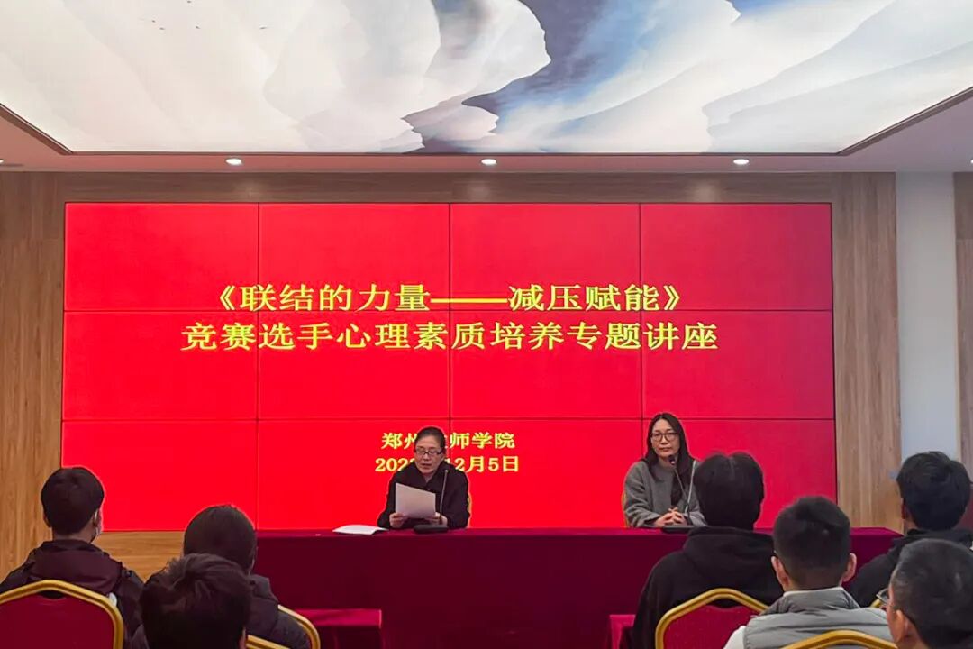 为正确应对技能竞赛选手长期培养过程中出现的各种心理问题,减轻备赛和竞赛给选手心理带来的冲击,调试和排解心理困扰,12月5日,学院邀请郑州万愈心理咨询有限公司首席导师和心理咨询师万晓莉老师为学院竞赛教练及参训选手进行心理辅导。入围第二届全国职业技能大赛的9个项目(信息网络布线、货运代理、商品展示技术、装配钳工、油漆与装饰、全媒体运营、美容、焊接、茶艺)教练团队、在校参赛选手、梯队选手参加讲座。