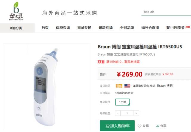 其实,除了宝宝使用之外,Bella觉得家中有个耳温枪还是很有必要的,尤其现在流感盛行,随时取随时测,节省时间,安全方便。现在笨土豆平台就可以找得到,特别是还参加双11的满减活动,一起来看看吧!