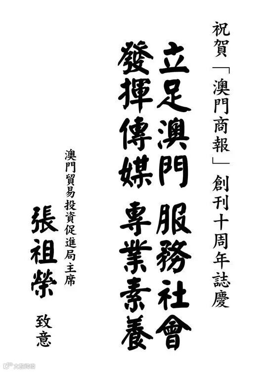 澳门贸易投资促进局主席张祖荣题词