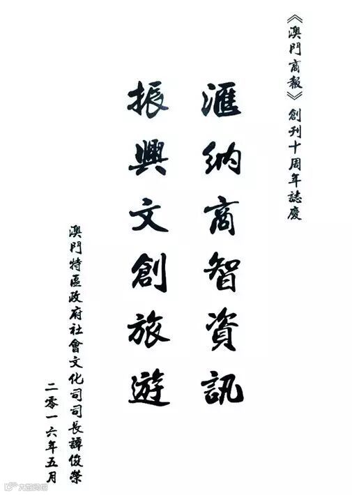 澳門特區政府社會文化司司長譚俊榮題詞