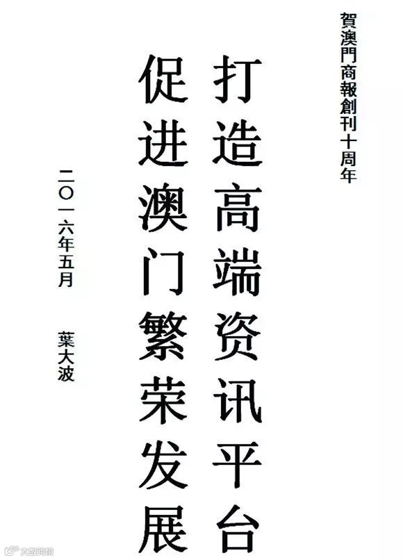 中華人民共和國外交部駐澳門特別行政區特派員公署特派員叶大波題詞