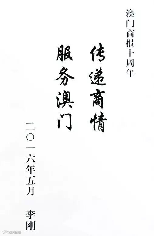中央人民政府駐澳門特別行政區聯絡辦公室主任李刚題詞
