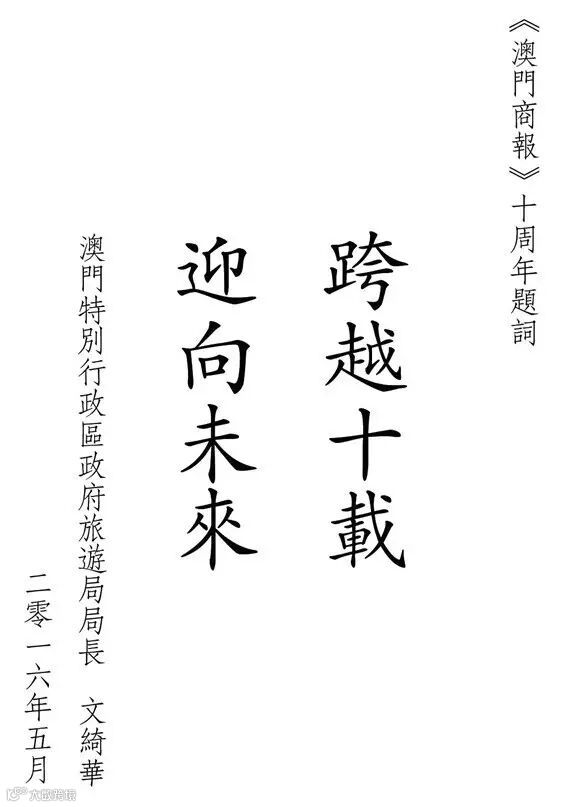 澳門特別行政區政府旅遊局局長文綺華题词